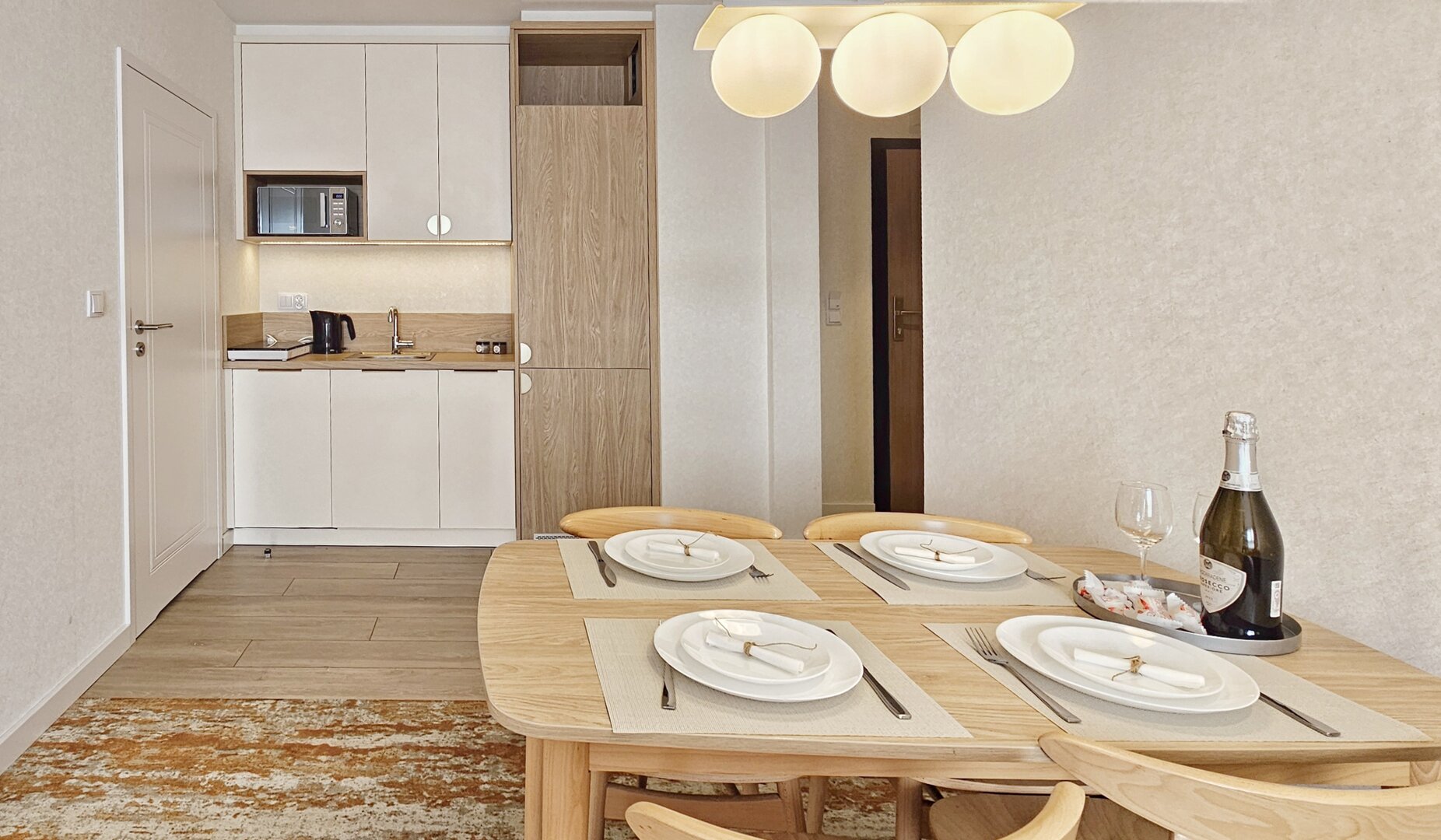 We invite you to a unique apartment in the modern Bel Mare apartment complex, located in a picturesque resort, just 350 meters from the beach and equally close to the city center. This is a perfect place for a holiday, which combines comfort, convenience and proximity to the sea and tourist attractions. The apartment is designed for 4 people and provides a spacious, comfortable space for relaxation and rest after a day full of excitement.