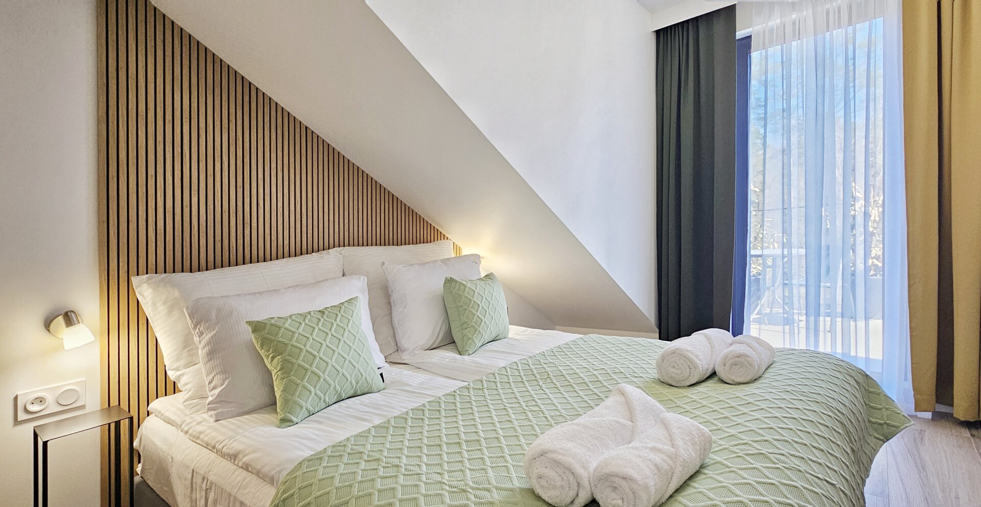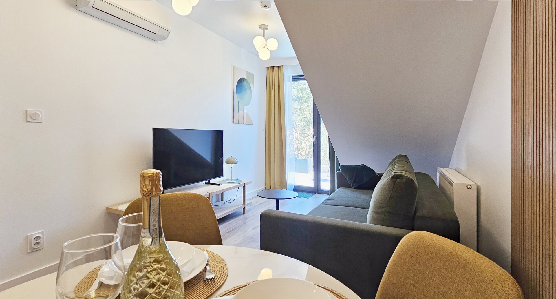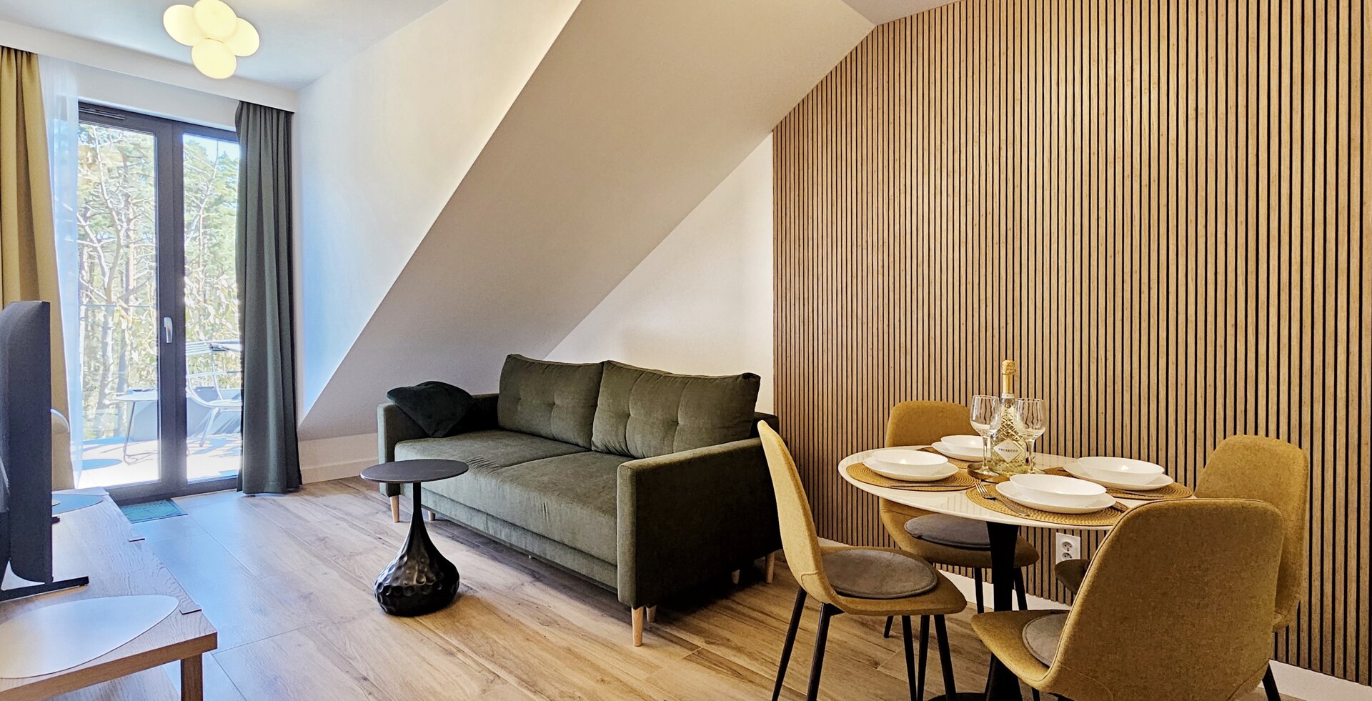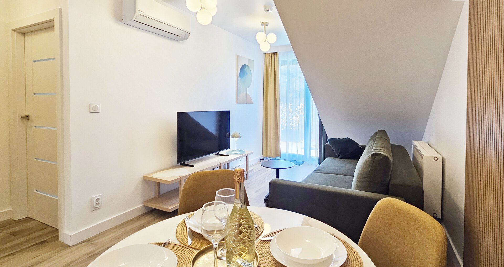 Duży apartament z antresolą i osobną sypialnią 100 metrów od plaży