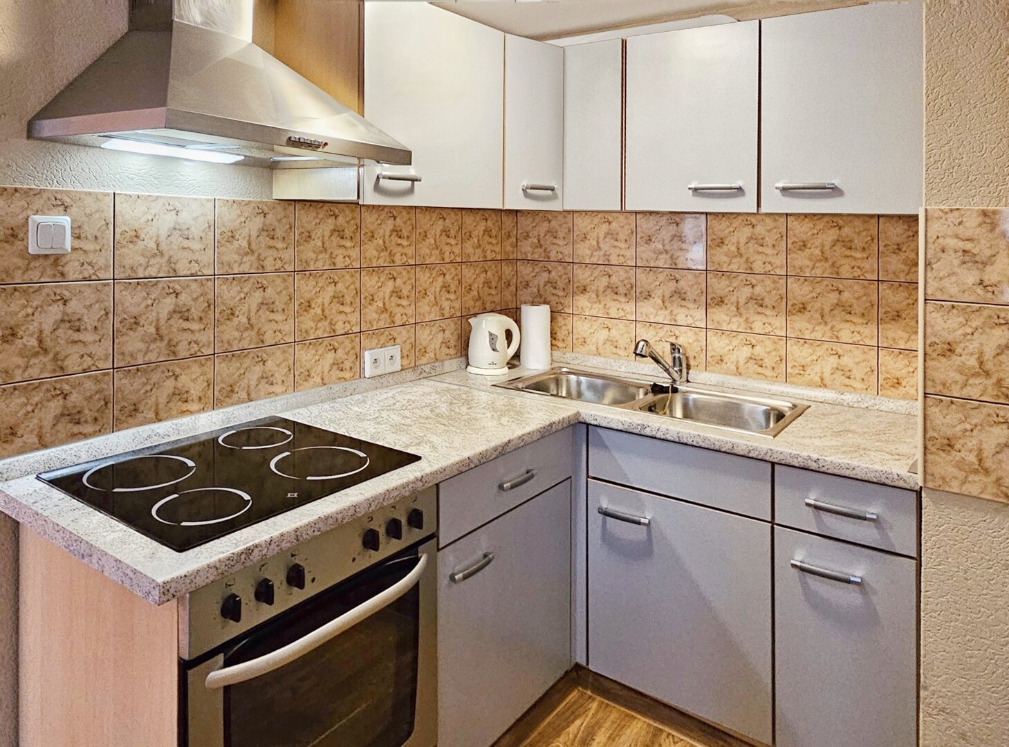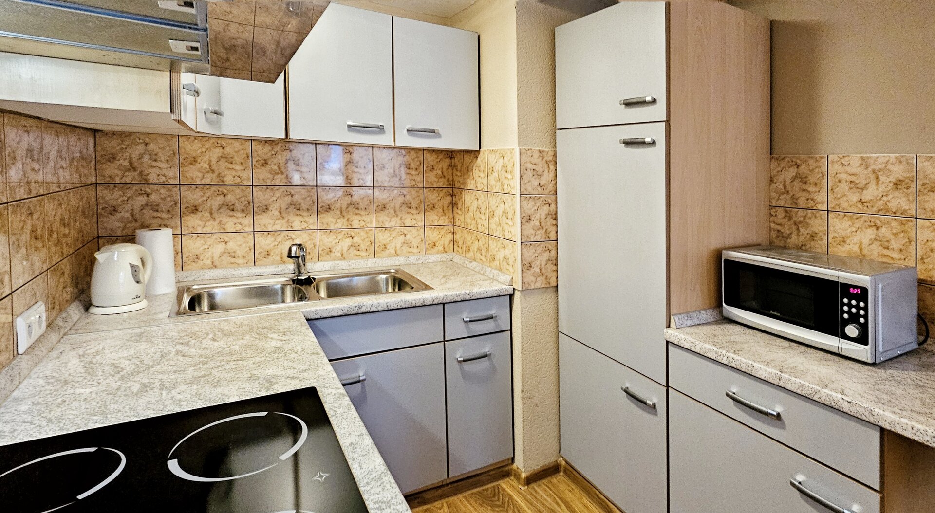 Tuż obok salonu znajduje się kuchnia, która jest doskonale wyposażona, by przygotowanie posiłków stało się przyjemnością - płyta grzewcza, lodówka, ekspres do kawy oraz czajnik elektryczny – wszystkie te udogodnienia umożliwiają komfortowe gotowanie i parzenie ulubionych napojów.